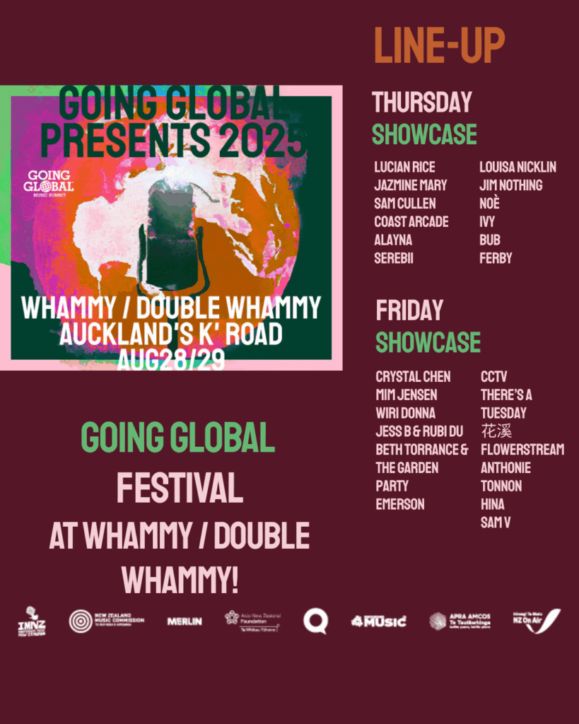 Independent Music New Zealand (IMNZ) and the NZ Music Commission are thrilled to reveal the final details for Going Global Music Summit 2025; including the Going Global Festival day splits and the last wave of powerhouse speakers for our thought-provoking panels that will fuel two days of industry connection and inspiration.